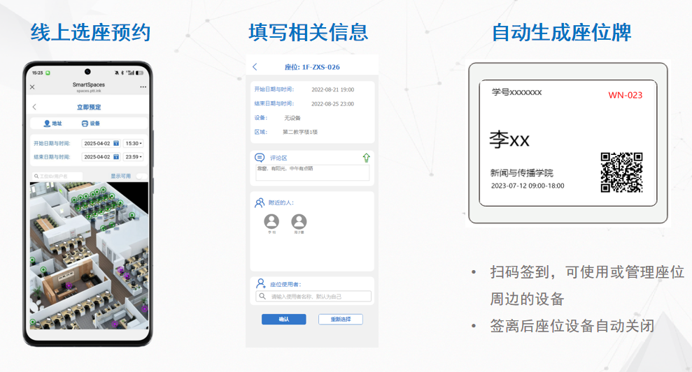 座位管理灵活,解决占座等问题,支持设备筛选